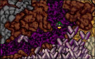 This is a screen from Hyper Lander 2 which shows the top of a massive growth of crystals which clog an area that you have to fly through, the coolest part thought is the great cavern, a huge 4000 foot ascension chamber a few hundred yards up the tunnel.   This screen is from project BOB. It's the lava room, can you guess why? It's a great puzzle, bring bombs with you.